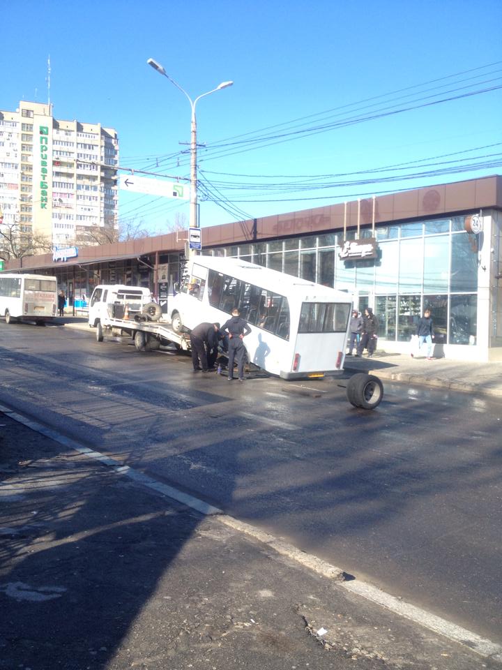Сегодня в Николаеве на проспекте Ленина возле остановки «Советская» у маршрутки отвалилось заднее колесо.