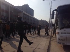 Два больших автобуса и два микроавтобуса встретили возле мэрии представители Хортицкого полка, Самообороны, Гражданского корпуса «Азов». В сторонников Ленина полетели яйца. Один из автобусов с мелитопольцами сразу же уехал обратно, передает LB.ua.