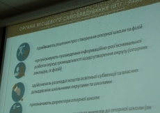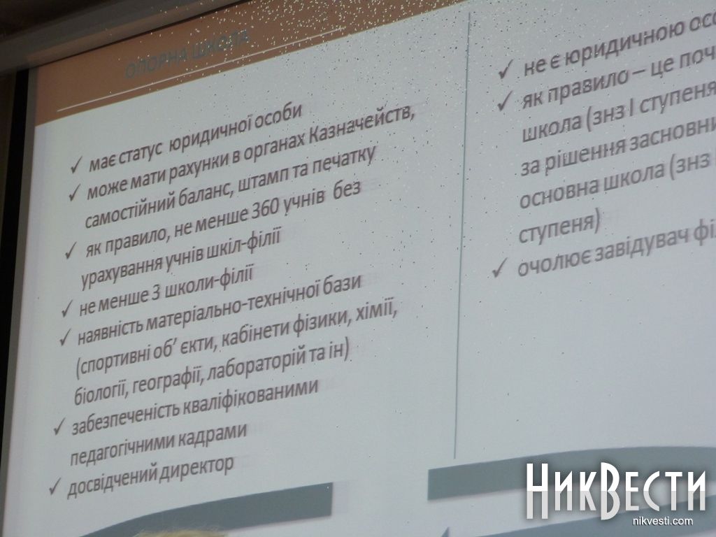 — В области будут так называемые «hub-schools», финансироваться они будут за счет внебюджетных организаций, иностранных доноров – в области их будет 2 или 3. В районах каждая громада самостоятельно будет решать, сколько таких школ. Как правило, в ней должно быть не менее 360 учеников, перевозка детей из близлежащих школ – нужно не менее 3 филиалов, это школы первой-второй степеней. Перевозку нужно продумать, по санитарным нормам дети не более 40 минут должны ехать к месту учебы, маршрут не должен превышать 15 километров, - сказала Алла Велиховская.