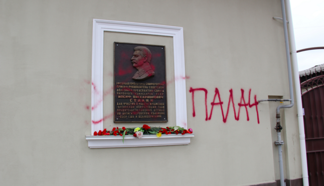 В Крыму рядом с мемориальной доской Сталину написали «Палач»