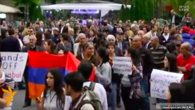 Участники акции 21 апреля прошли к посольству России. Они заявляли, что Сергей Лавров привез «антиармянский план» урегулирования проблемы Нагорного Карабаха, а также требовали прекращения поставок оружия Азербайджану.