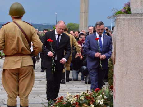 Гейтман (председатель) Южноморавского края Чехии Михал Гашек вместе с байкерами российского клуба "Ночные волки" возложил цветы к памятнику воинам Красной армии в городе Брно.