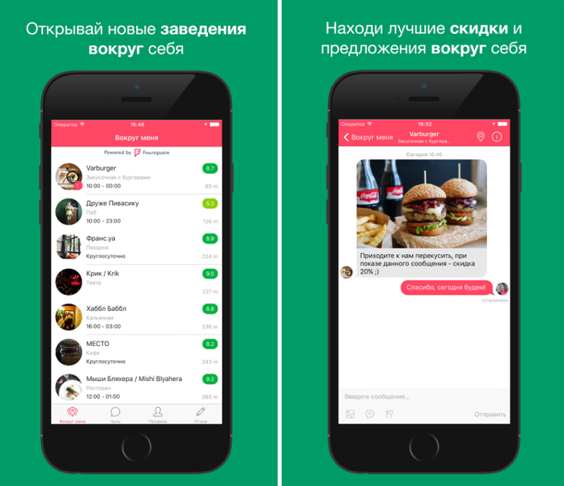 Это гео-мессенджер, с помощью которого пользователи смогут писать в чаты заведениям вокруг себя. На 6 мая приложение установили уже более 7000 пользователей.