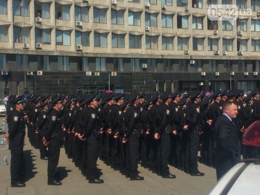 В четверг, 12 мая, в Сумах приняли присягу около 250 патрульных полицейских, который выходят на патрулирование улиц города в составе 25 экипажей.