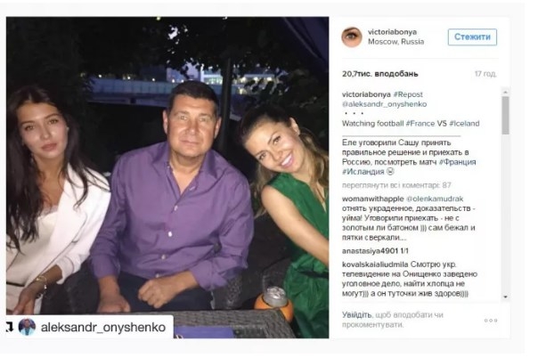 Депутат Верховной Рады Александр Онищенко, с которого во вторник могут снять неприкосновенность, в воскресенье, 3 июля, находился в Москве, где смотрел футбольный матч между сборными Франции и Исландии.