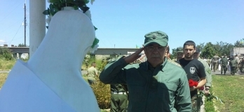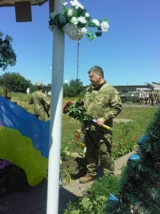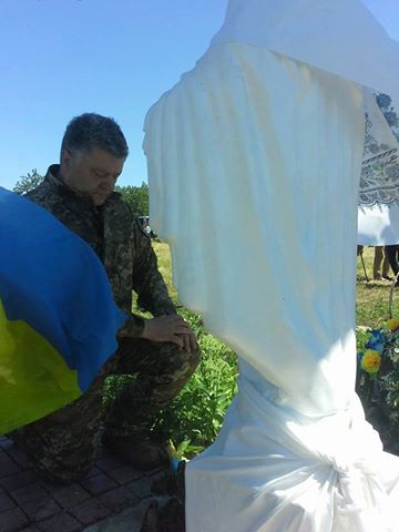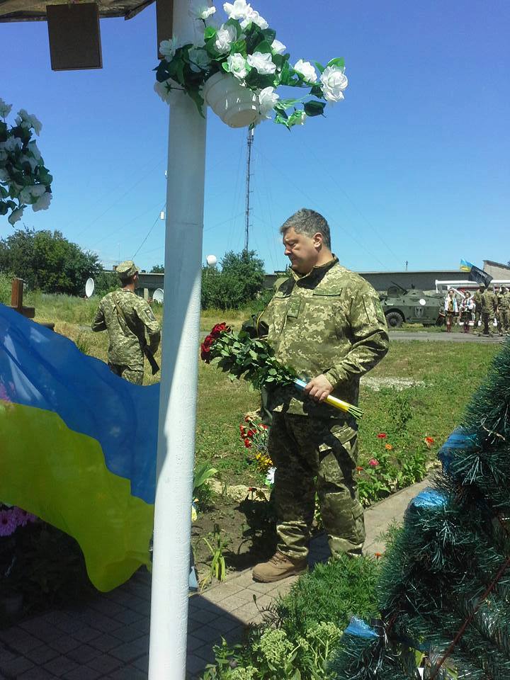 В полном молчании, только под звуки выстрелов торжественного салюта, Президент Украины возложил цветы к памятнику героям, которые защищали эту стратегически важную высоту.