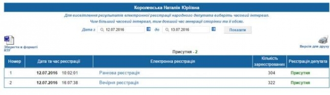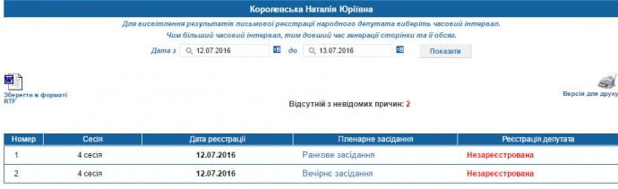 В то же время, на сайте Верховной Рады в разделе электронной регистрации указывается, что карта Королевской присутствовала на утреннем и вечернем заседании во вторник.