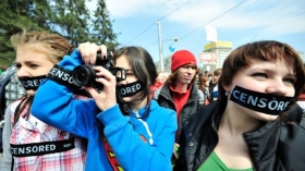 Конституционный суд России признал право участников массовых акций заклеивать рот скотчем, делать на лице рисунки или клеить стикеры с агитацией.