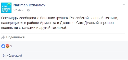 В свою очередь вице-президент Всемирного конгресса крымских татар Ленур Ислямов сообщил, что, судя по всему, в непосредственной близости от админгранице проходят военные учения.