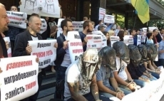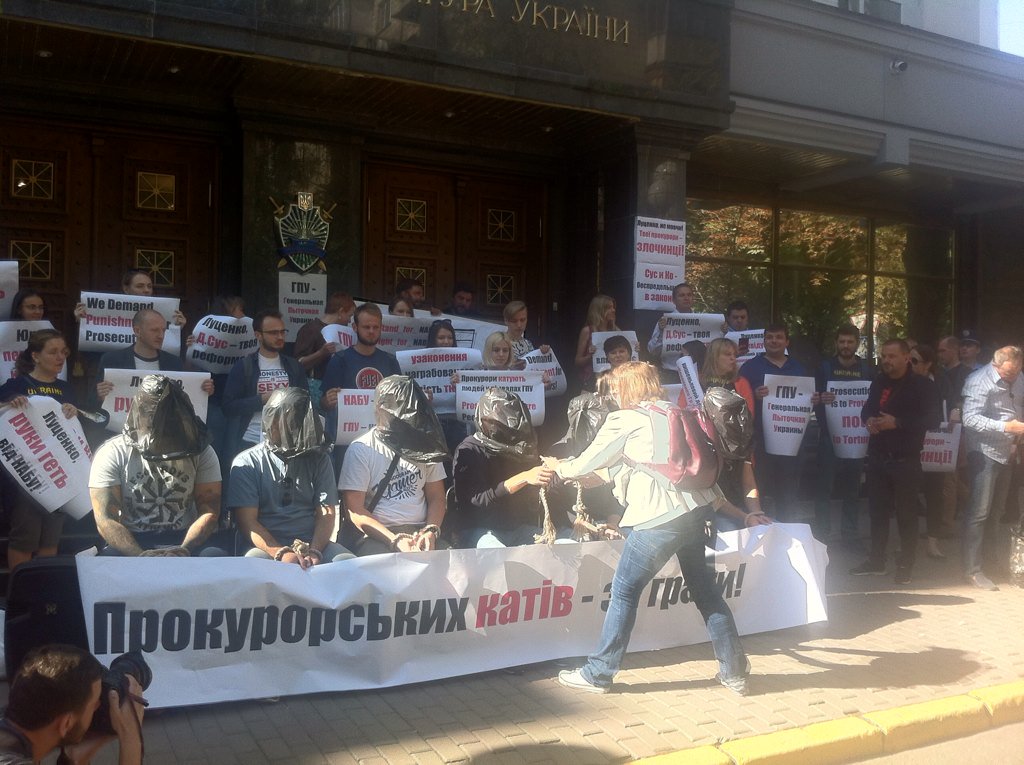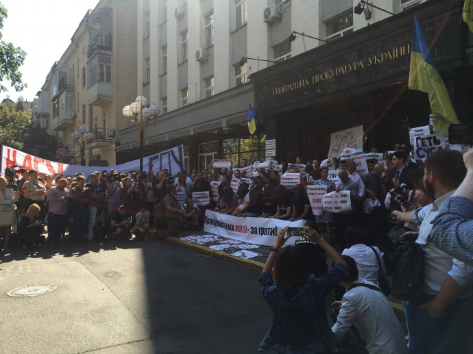 Сегодня, 17 августа, под зданием Генеральной прокуратуры в Киеве проходила акция против похищения и издевательств над сотрудниками Национального антикоррупционного бюро.