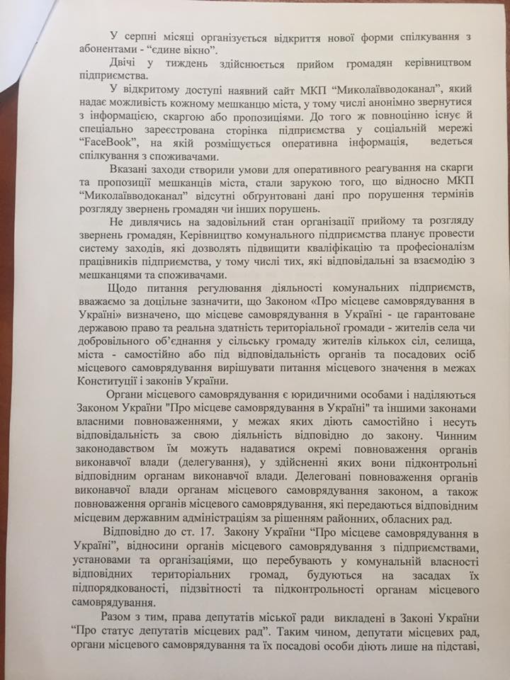 Об этом идет речь в ответе директора «Николаевводоканала» Бориса Дуденко на информационный запрос Владислава Ентина.
