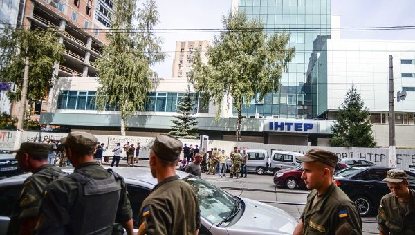 Около полусотни активистов находятся около здания телеканала «Интер». Митингующие не пускают сотрудников телеканала в офис.