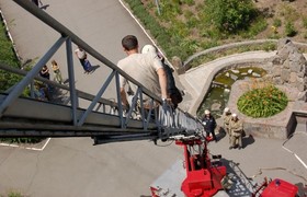 В ходе проведения разведки в помещениях отеля звеньями газодымозащитников, было выявлено одного человека, который оказался в дымовой ловушке на четвертом этаже. Спасание заблокированного человека было решено провести через окно четвертого этажа с помощью автолесници, для наиболее быстрой эвакуации пострадавшего с опасной среды. Согласно замыслу проверочных учений еще один человек застрял в шахте лифта между вторым и третьим этажами. Для спасения пострадавшего было задействовано звено газодымозащитной службы со специальным аварийно-спасательным снаряжением.