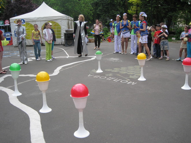 Началась программа с конкурсов, спортивных игр для всех желающих проявить сноровку, продолжилась шуточным выступлением отряда. Для проверки уровня познаний детей в области правил дорожного движения инспектором сектора связи с общественностью УГАИ УМВД Украины Натальей Устименко была приготовлена и проведена викторина, за правильные ответы дети получали сувениры. Кульминацией праздника стало бесплатное угощение мороженым.