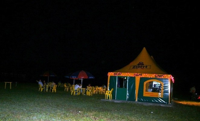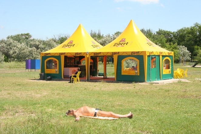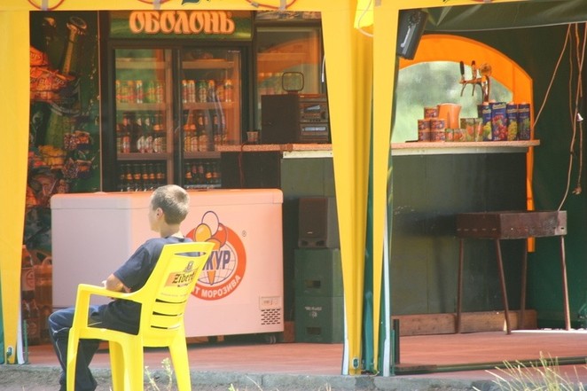 Главным элементом благоустройства единственного городского пляжа, по замыслу ведомства г-на Рыжика стали пивные палатки. Они удобно расположились на песочке, в самых чистых местах берега. С утра и до позднего вечера здесь можно выпить пива, а если попросить бармена, то из-под прилавка вам с удовольствием продадут и водочки, да и вообще, всего, что душа пожелает. Пьяные посетители без устали «отдыхают» здесь, любуясь пейзажем - благо пластиковые столики стоят практически у самой воды. С утра до поздней ночи гремит музыка, льется рекой спиртное, стелется дым от мангалов, гудят пьяные компании — что еще нужно для благоустройства пляжа?
