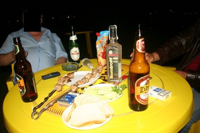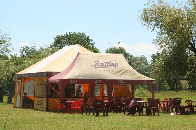 Немногочисленные отдыхающие, которые приходят сюда действительно побыть на берегу реки, позагорать под первым летним солнышком, пугливо жмутся подальше от пьяного разгула. Для этого приходится лезть в камыши, в заросли высокой травы — лишь бы не попасть под пьяную руку посетителей шалманов. Такой роскоши, как туалет, возле палаток тоже не предусмотрено, поэтому в качестве «отхожего места» используются все близлежащие кусты, а если совсем невмоготу — то и речка сгодится. Благоустройство налицо!