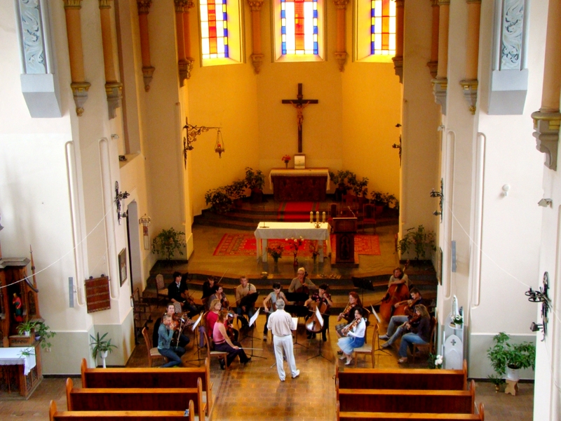 - Я только приспосабливаюсь, сейчас достаточно сложно. У нас идет репетиция. В костеле очень большая акустика. Это очень хорошо для органа. Но очень большая дистанция от органа до оркестра, дирижера практически не видно, так что приспосабливаемся. Достаточно сложно музицировать, потому что оркестр сидит возле алтаря, а я сижу на балконе, и визуальный контроль очень сложный. Включаем опыт, практику, и занимаемся, занимаемся, занимаемся. Вчера репетировали, сегодня репетируем. Надеюсь, что концерт пройдет удачно.