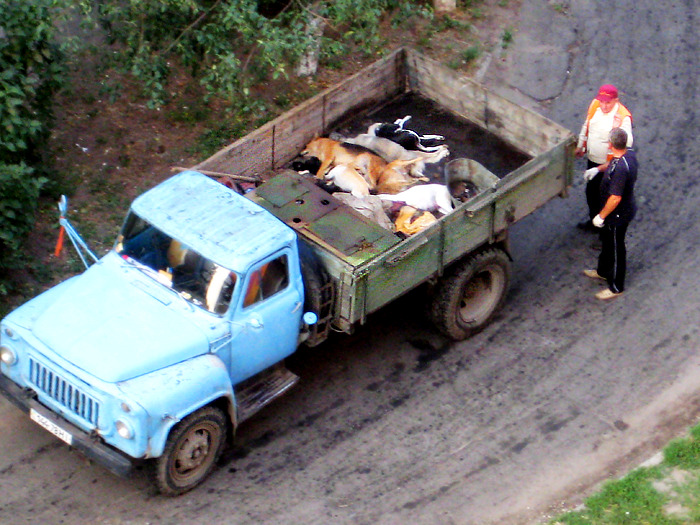 Животные расстреливались из шприцемета отравляющим веществом на месте их пребывания, а потом работник ЖЭКа бездушно брал этих собак (среди них была и большая овчарка, и маленькие щенки) и перекидывал через борт машины.