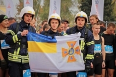 Отмечается, что дистанцию в 10 километров в боевой одежде с оснащением преодолевают спасатели Главного управления ДСНС Украины в Николаевской области - Вячеслав Таращенко, Владислав и Станислав Бильчуки.