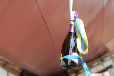 Как сообщается, по флотской традиции, во время спуска корабля на воду, о борт корабля разбили бутылку шампанского. «Крестной матерью» корабля стала директор благотворительного фонда Морского транспорта Антонина Шкамерда. Представитель духовенства отец Михаил освятил корабль и экипаж.