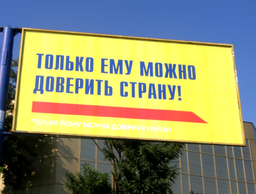 Вслед за биг-бордами «Вона працює…», «фронтовыми» лозунгами Арсения, рекламой «слуховых аппаратов» Януковича, вопросов от Единого Центра и «Google от Тигипко» появились рекламные щиты, на которые не обратить внимание просто не возможно.