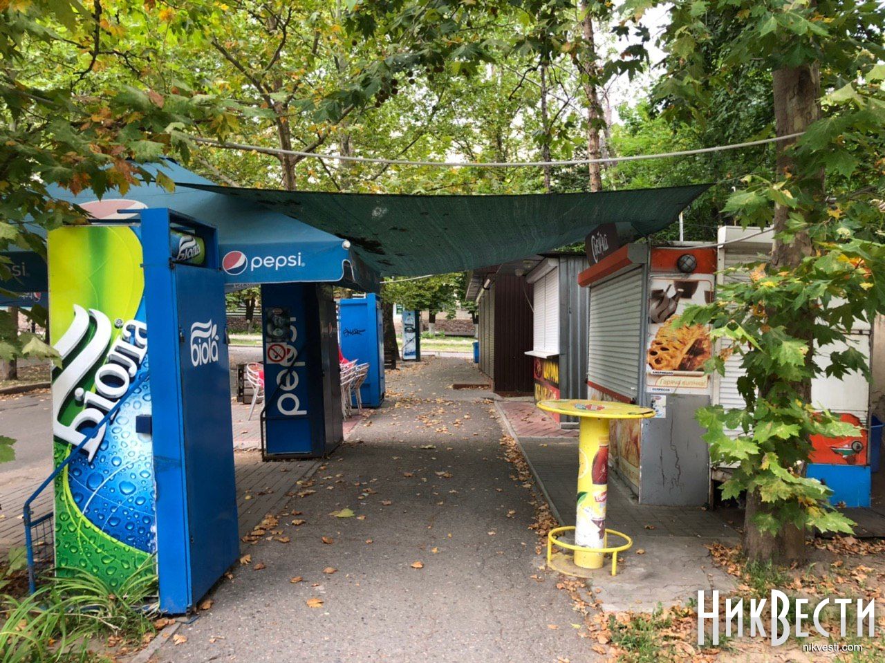 Жители Николаева жалуются на наливайки и киоски, которые «заполонили» тротуар возле Дома офицеров флота, где совсем недавно открылся кинотеатр под открытым небом.