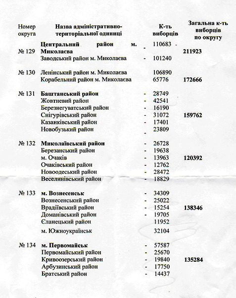 Напомним, Николаевский областной совет предложил Центральной избирательной комиссии, для проведения выборов Президента Украины 17 января 2010 года, создать на территории Николаевской области 6 избирательных округов №№129-134.