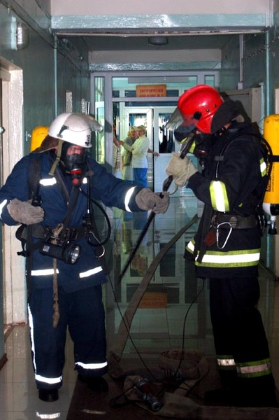 Как прокомментировал руководитель учений начальник управления спасательных сил ГУ МЧС Украины в Николаевской области Орест Корчинский: « Учения проходили в два этапа: первый –теоретическая часть- личный состав ознакомился с планировкой больницы, путями эвакуации, водоснабжением данного объекта; второй - практическая часть. С личным составом и обслуживающим персоналом больницы условно тушили пожар, эвакуировали людей. Как сотрудники МЧС так и рабочие больницы с поставленной задачей справились».