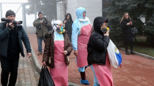 Женщина говорит об угрозах, которые поступали дочери после того, как она рассказала ВВС News Украина свою историю об эвакуации. Позже правоохранители с помощью военной техники начали расчищать дорогу в санаторий от автомобилей протестующих.