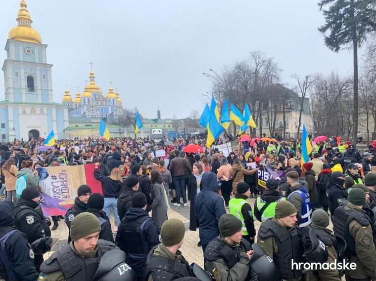 В Киеве на Михайловской площади 8 марта несколько сотен человек вышли на Марш женщин.
