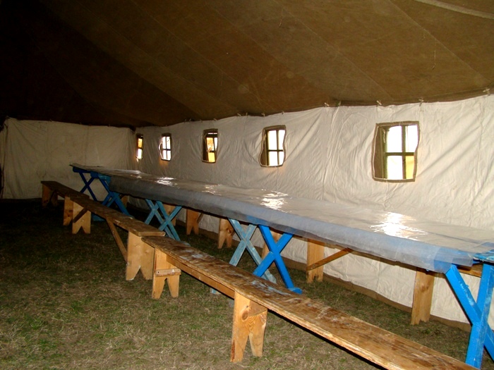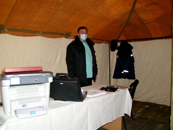 - Мы объявили сбор личного состава в шесть утра. И вот, к 12 часам дня у нас полностью готов и укомплектован палаточный городок, - говорит он. - Есть все необходимое оборудование, снаряжение, есть запас марлевых повязок, медикаментов. Стопроцентная готовность.