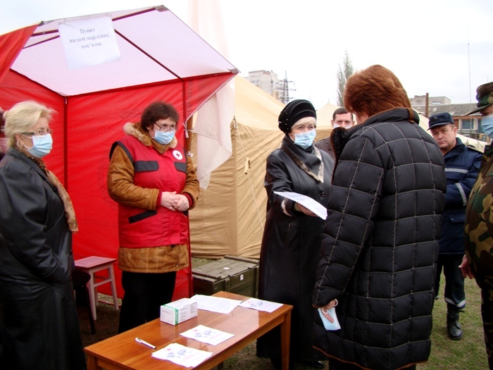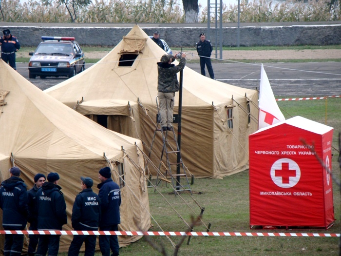 Сегодня все службы Николаевской области отрабатывали свои действия в случае эпидемии гриппа. В течение шести часов на стадионе в Ракетной Роще, рядом с пожарной частью, был развернут палаточный городок. 90 человек личного состава МЧС, сотрудники милиции, санэпидстанции, областного управления здравоохранения, волонтеры «Красного Креста» отрабатывали свои действия.