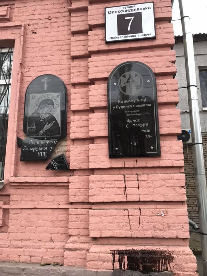 Неизвестные в Запорожье облили краской мемориальную доску на здании, в котором во время Голодомора погибли почти 800 детей.