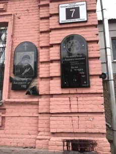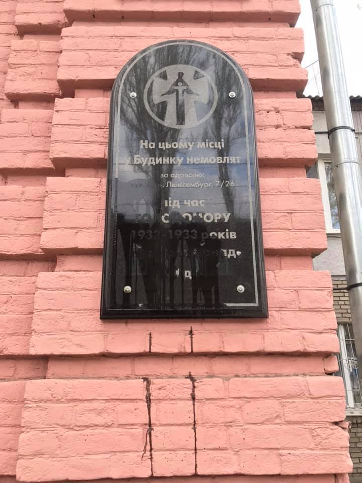 Доска была расположена на здании, где в 1930-х годах был дом младенца. Кроме нее также на здании был и памятный знак, который установила местная епархия УПЦ МП.