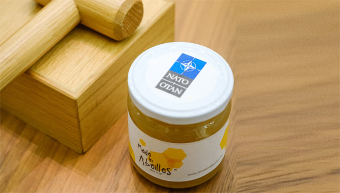 С апреля в штаб-квартире НАТО появились три улья и до 90 000 пчел, а сотрудников и их детей пригласили принять участие в процессе пчеловодства и производства меда.