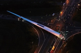 Здесь также не обошлось без маневрирования по улицам, поэтому лопасть установили на специальную платформу, которая поворачивала груз в зависимости от направления движения.