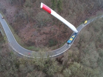 Транспортная компания «P. Adams Schwertransporte» из Люксембурга поделилась фотографиями перевозки лопасти турбины ветровой электростанции.
