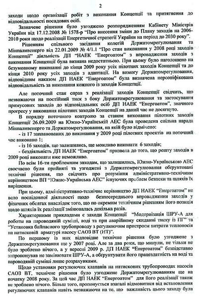 - бездеятельность ГП НАЭК «Энергоатом» привела к тому, что остальные мероприятия в 2009 году выполнить невозможно.