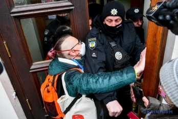 Между журналистами и полицией произошла потасовка. Правоохранители закрыли центральный и «черный» вход в здание горсовета, оставив СМИ за забором.