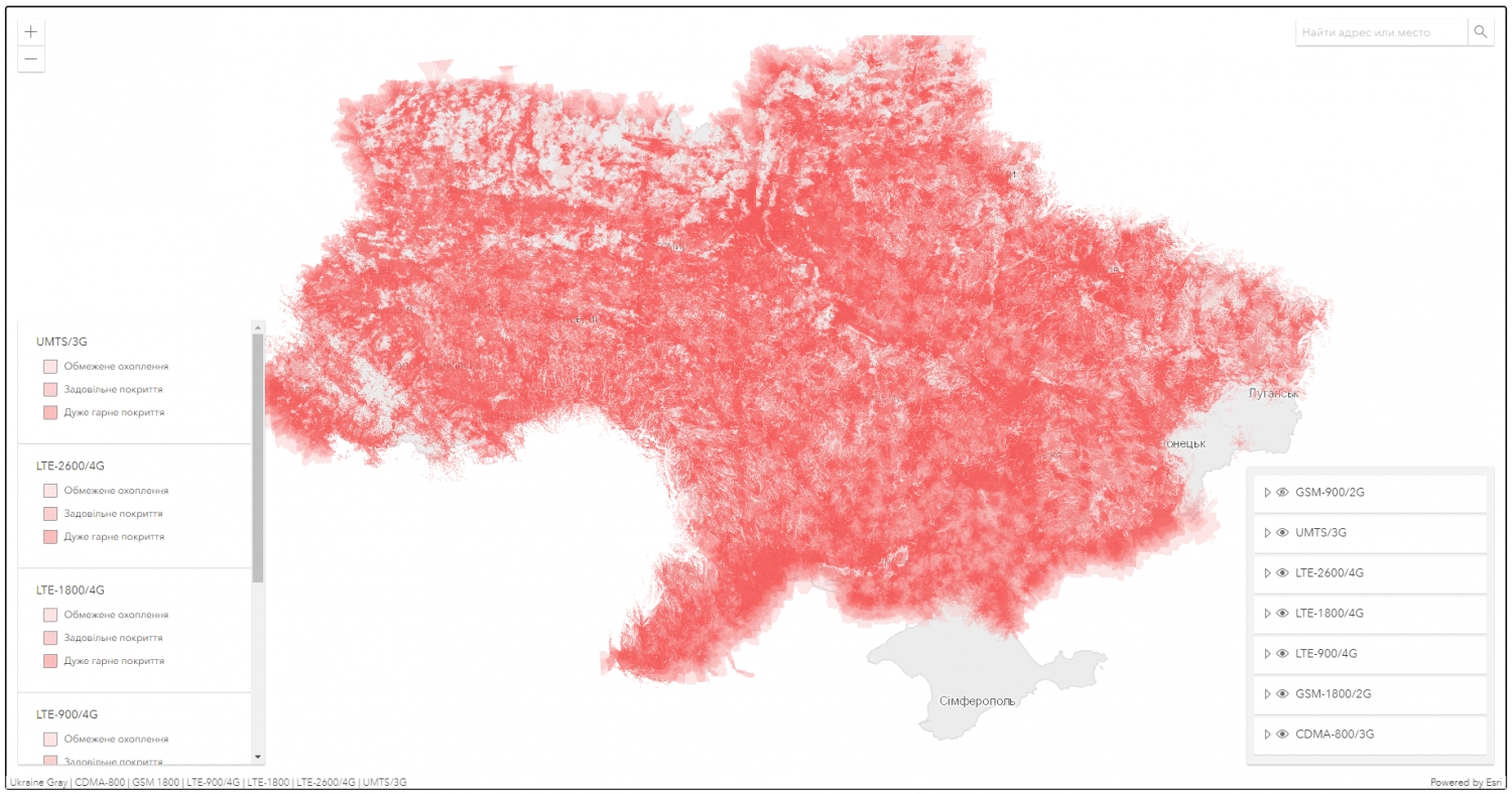 «Украинский государственный центр радиочастот» (УГЦР), в течение последнего полугодия ежемесячно проводил теоретические расчеты зоны покрытия мобильной связи.
