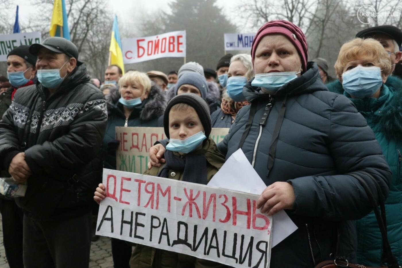 В городок съехались люди из соседних поселков, автобусы приходили из Мангуша, Боевого, некоторые добирались из Мариуполя. Люди возмущены, что рядом с их домами откроется участок, на котором разрабатывать начнут тяжелый материал.