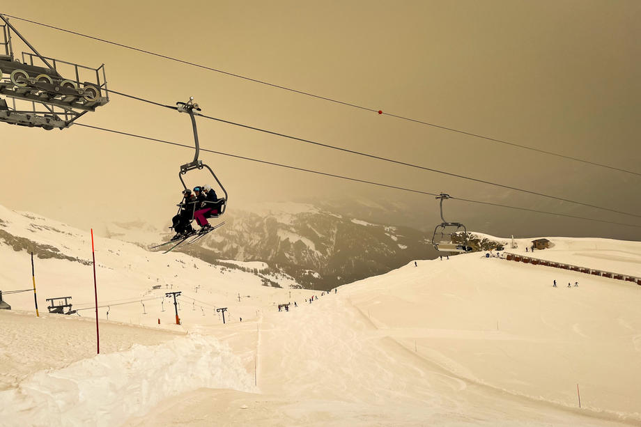Рыжим стал не только снег в Альпах и Пиренеях, но и небо над многими регионами Европы: на востоке и юге Франции, повсюду в Швейцарии, на юге Германии. Кататься на лыжах на альпийских горнолыжных курортах стало некомфортно — песок ухудшил скольжение, да и видимость тоже.