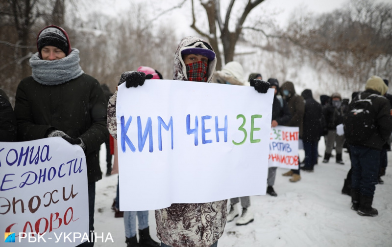 В Киеве устроили акцию протеста из-за закрытия телеканалов Newsone, «112 Украина» и ZIK. Люди протестуют возле конгрессно-выставочного центра «Парковый», где сейчас проходит форум «Украина 30».