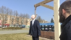 Как пишет местное издание «Херсон.online», сначала люди повесили чучело Владимира Путина на виселице, затем сожгли матрёшку-триколор с изображением президента РФ.