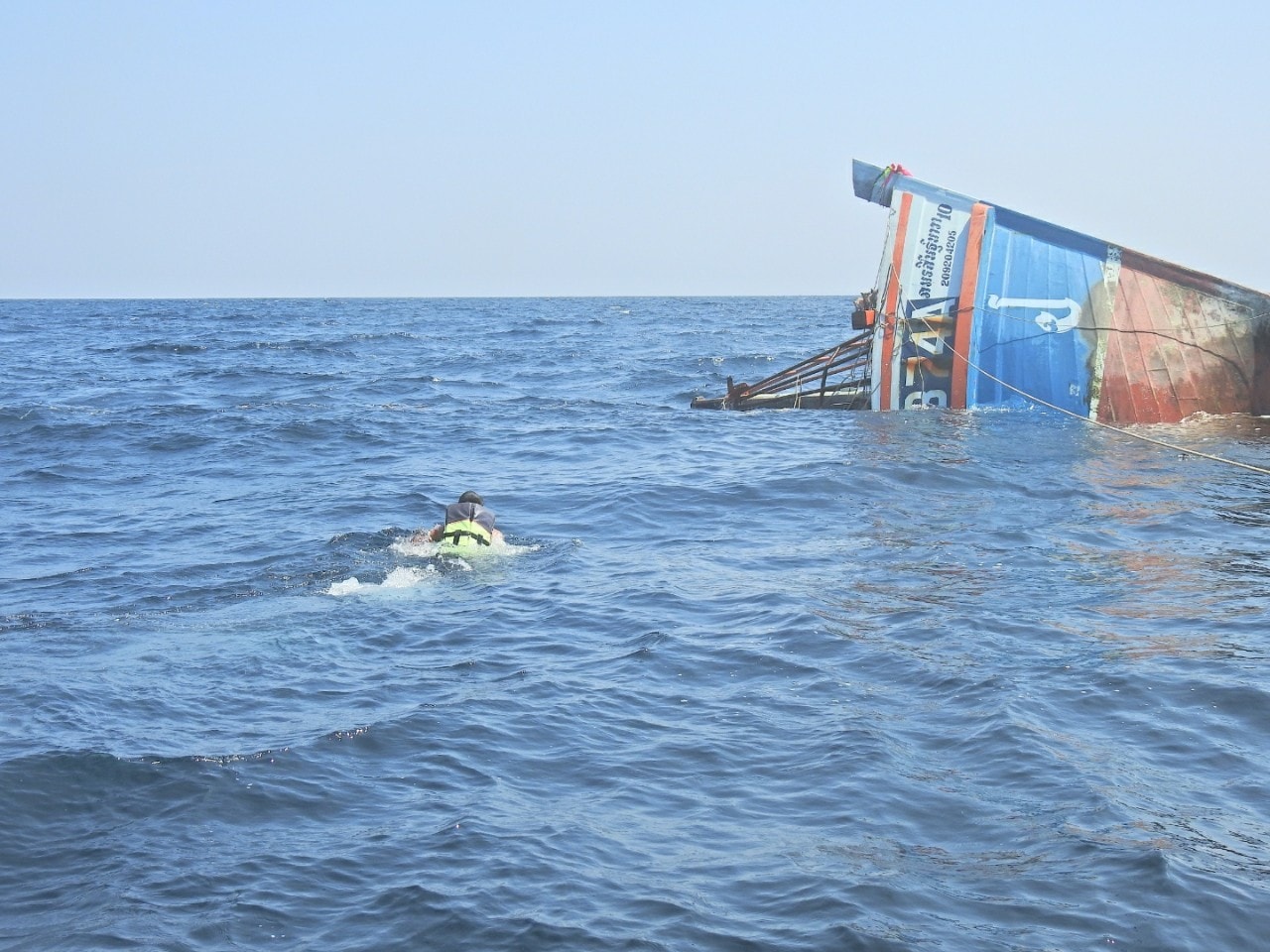 Подойти к тонущему судну ближе на катере было невозможно, поэтому военные спасали животных вплавь. 23-летний Татсафон Сайи надел спасательный жилет, подплыл к кораблю, поднялся на борт и посадил котов себе на спину. Ему пришлось сплавать к тонущему судну несколько раз, прежде чем он спас всех животных.