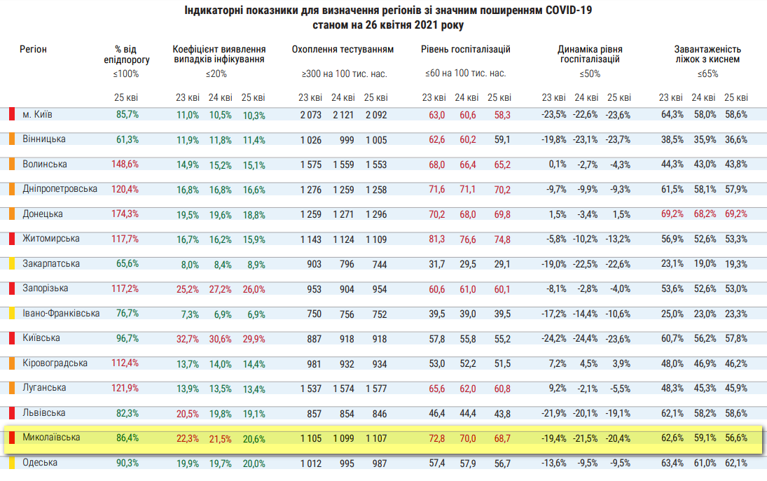 Николаевщина не соответствует норме по COVID-госпитализациям