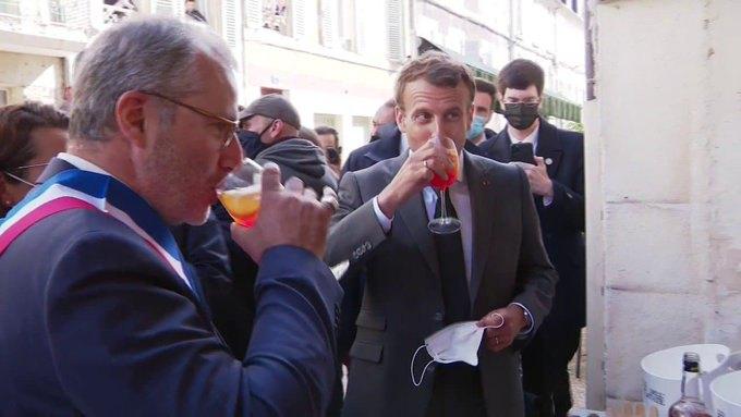 В одном из заведений в Невере состоялись торжества, в которых принял участие Эммануэль Макрон. Там его угостили коктейлем Венецианский Спритц. Президент Франции поднял бокал со словами «Santé!», что в переводе означает «За здоровье».