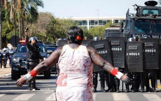 ОМОН применил слезоточивый газ и резиновые пули для разгона группы коренных жителей, протестовавших во вторник у здания Конгресса в Бразилии. Люди выступили против закона, который ограничивает их права на землю.