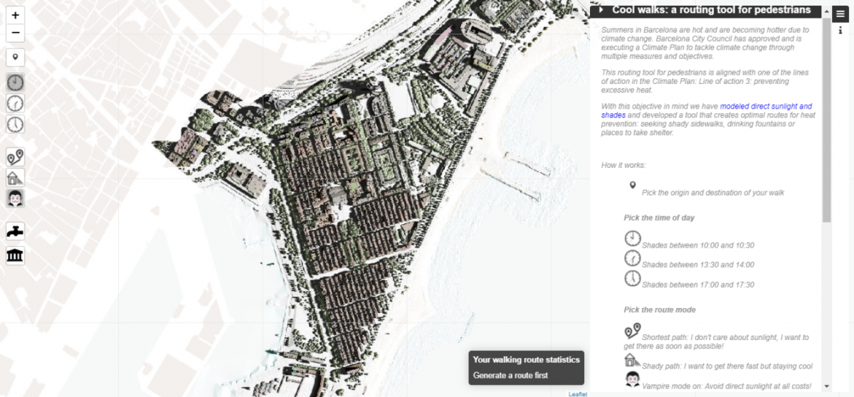 «Лето в Барселоне жаркое и становится все жарче из-за изменения климата. Городской совет Барселоны одобрил и выполняет климатический план по борьбе с изменением климата с помощью множества мер и задач. Этот инструмент маршрутизации для пешеходов соответствует одному из направлений климатического плана: предотвращение чрезмерной жары», — говорится на сайте сервиса.