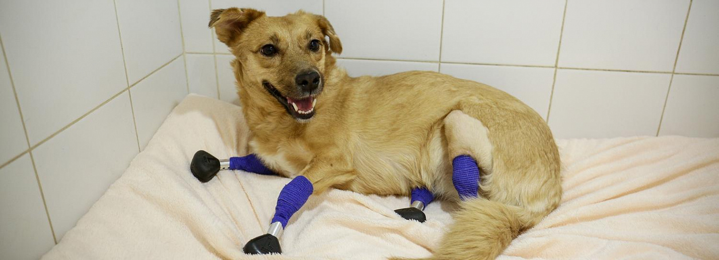 Впервые в истории ветеринары установили собаке протезы на все лапы